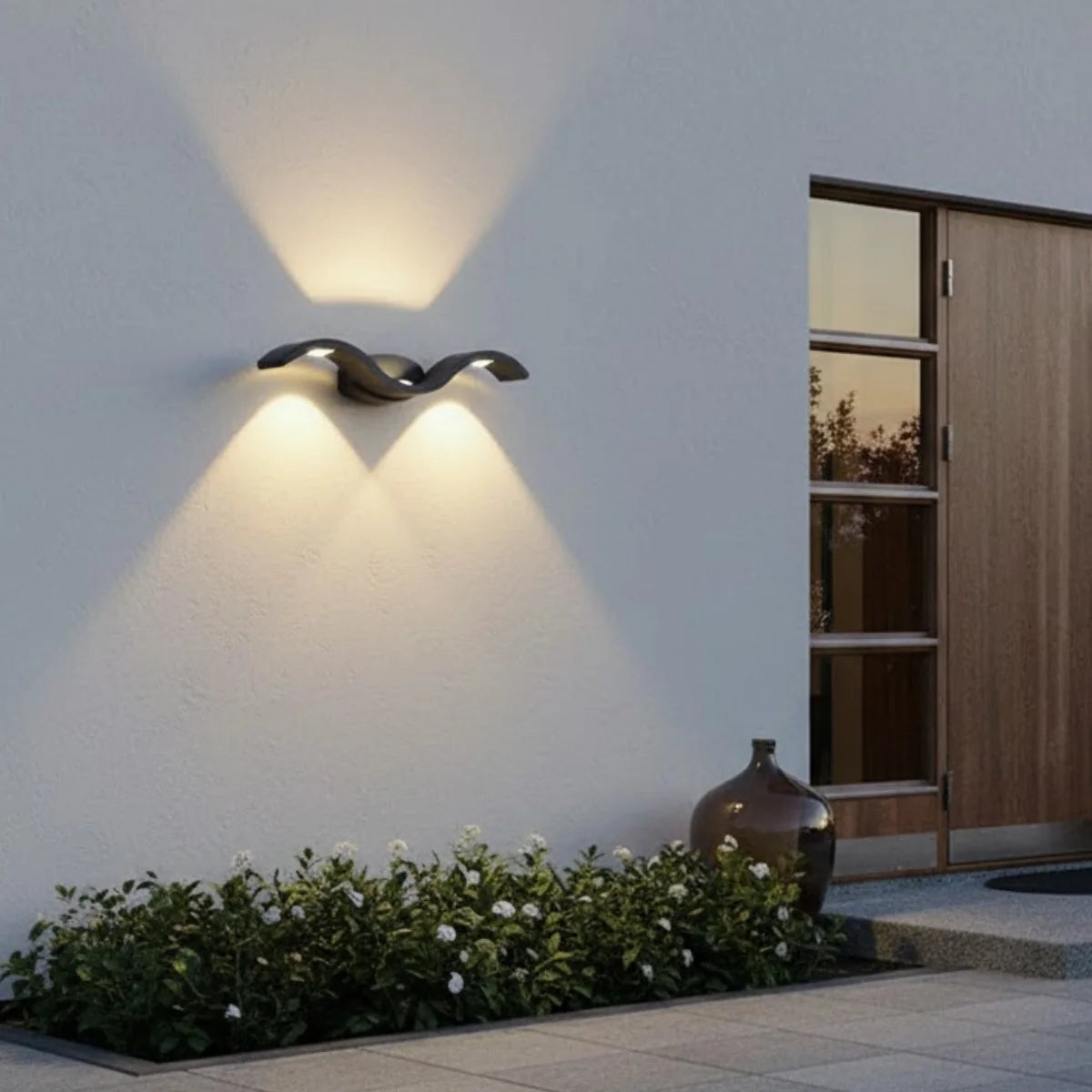 O design curvo moderno cria um efeito luminoso diferenciado, projetando luz tanto para cima quanto para baixo, transformando muros, jardins e varandas em espaços únicos.
